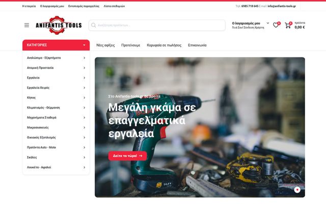 Το Anifantis-tools.gr δραστηριοποιείται στον χώρο τον ηλεκτρικών εργαλείων,των χρωμάτων,των μηχανημάτων κήπου καθως επίσης διαθέτει και μια μεγάλη γκάμα από εργαλεία χειρός,σιδερικά και υδραυλικά είδη.